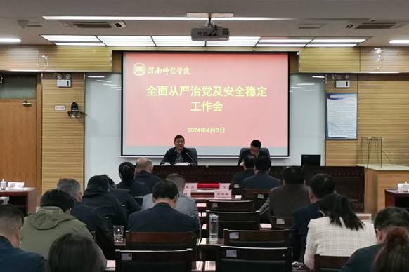4月3日,学校召开2024年全面从严治党及安全稳定工作会议。会议深入学习贯彻习近平总书记关于党的自我革命的重要思想,认真学习贯彻二十届中央纪委三次全会、十四届省纪委三次全会精神,传达学习2024年全省教育系统全面从严治党工作会议精神,总结学校2023年全面从严治党及安全稳定工作,安排部署2024年工作任务。党委书记卓宇出席会议并讲话,党委副书记、纪委书记、监察专员肖耀刚主持会议并对2024年学校纪检监察工作作出安排部署。