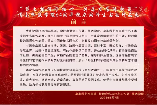 【64周年校庆】预告|“薪火相传守初心 共谋发展谱新篇”伟德国际1949官网64周年校庆周师生书画作品展