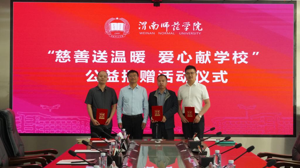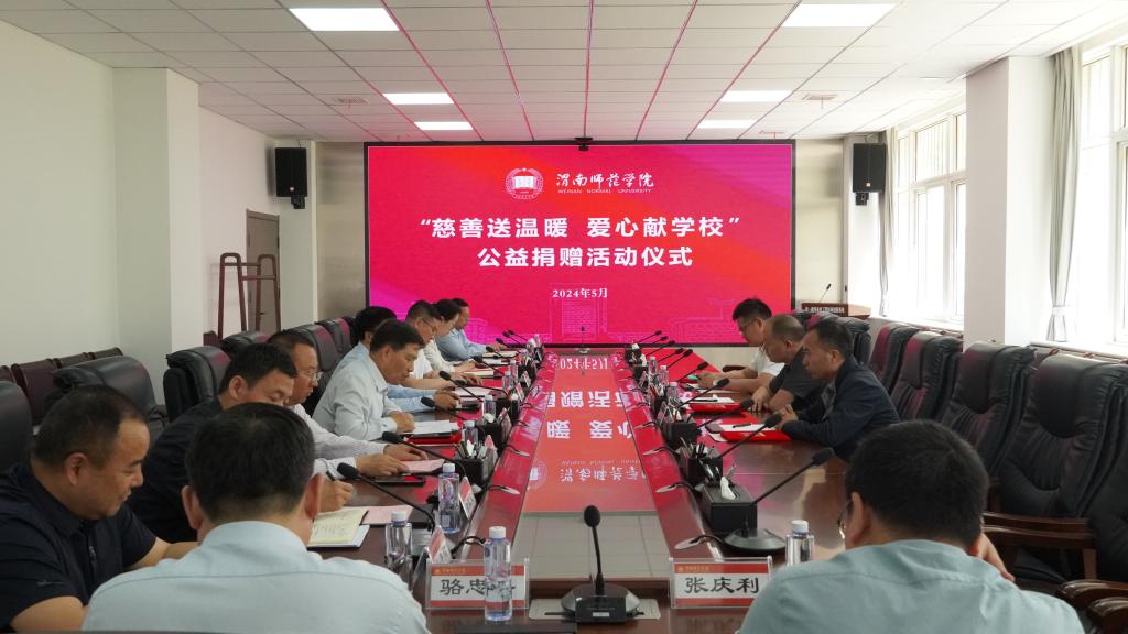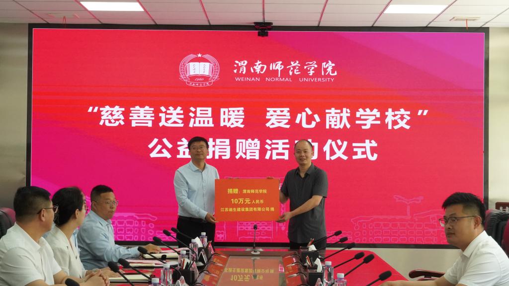5月9日下午,学校举行“慈善送温暖,爱心献学校”公益捐赠活动仪式。江苏迪生建设集团有限公司驻陕西省总经理吴晓东、西安百膳苑餐饮管理有限公司总经理马小虎、温州好味园餐饮管理服务有限公司西北区域市场运营总监程先锋,副校长常青林出席仪式。校地合作与校友工作处处长王建平主持会议。