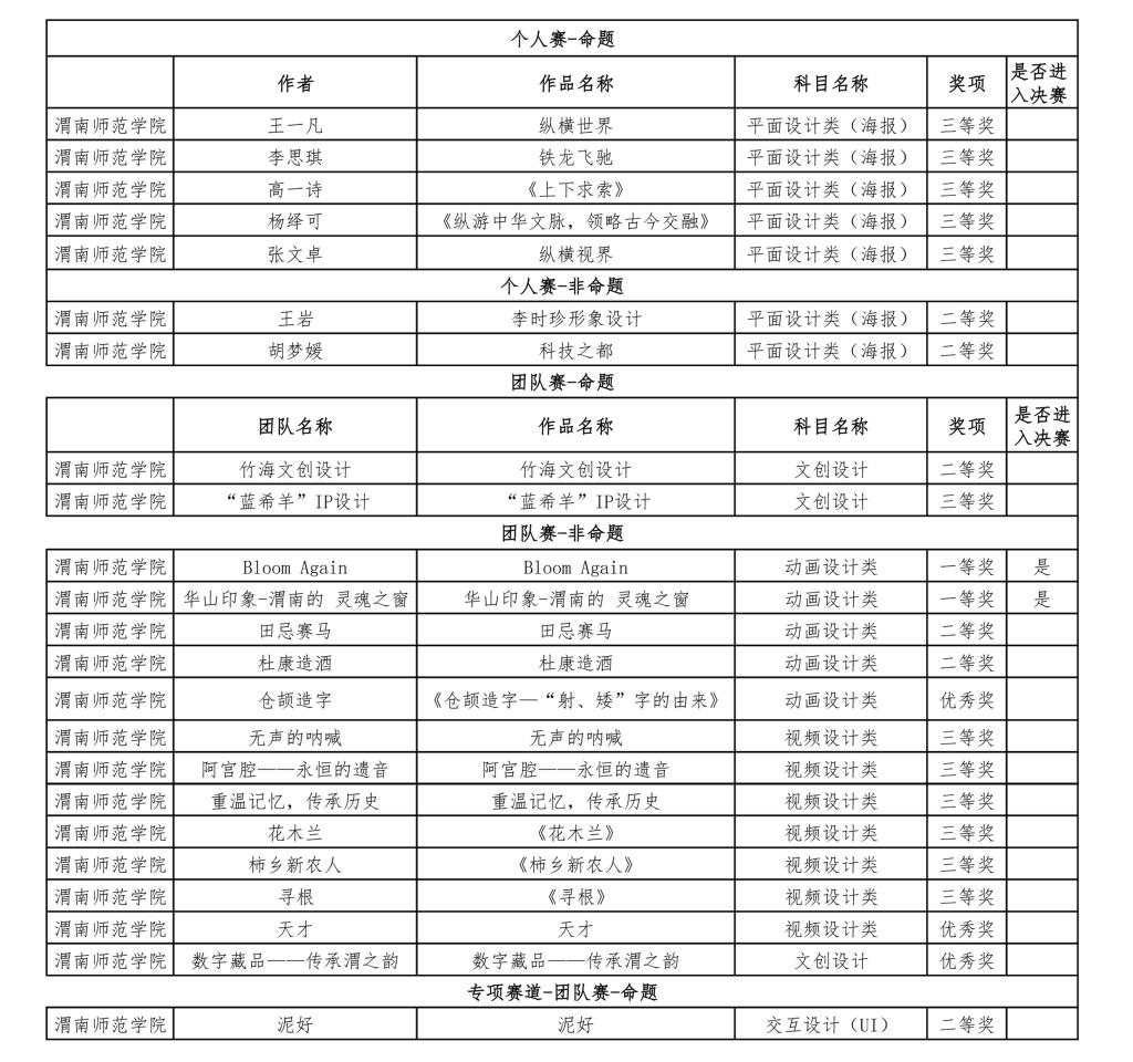大赛自启动以来,在教务处大力支持下,学院精心组织,师生积极参与。学院共征集到了110余件参赛作品,并从中选拔出了30件优秀作品参赛。2项省级一等奖入围全国总决赛,这不仅是对创作团队才能的褒奖,也是对学院教学质量和学生培养成果的肯定。(通讯员 陈栋 审核人 曹熙斌)