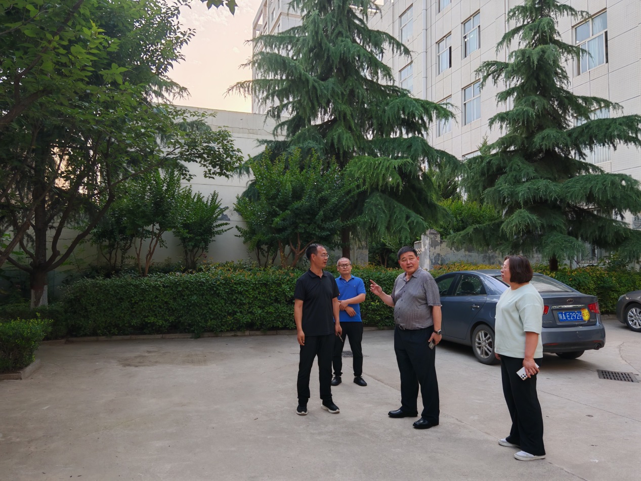 5月30日傍晚,学校党委书记卓宇深入后勤办公院,实地调研后勤办公楼建筑物安全。