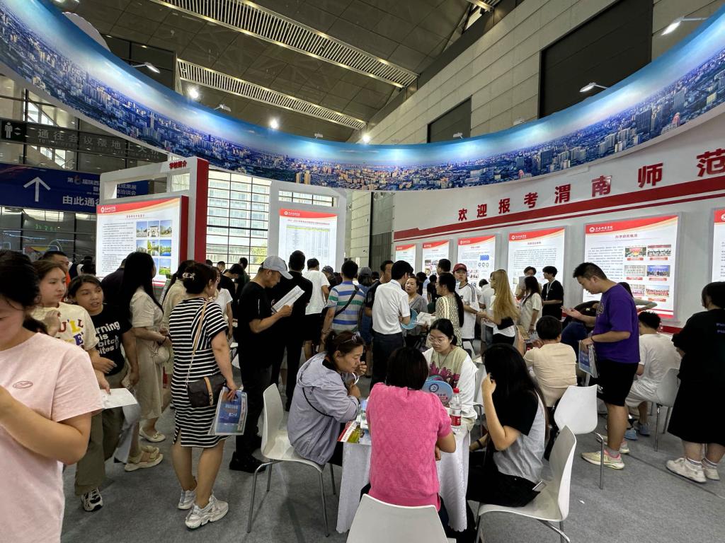 本次展会以“深化办学特色,展示工作亮点,塑造发展新优势”为主题,组织“四展示两活动”,即教育博览会主题展、高校“大思政课”建设成果展、高校科技成果展、研究生创新成果展、校企对接洽谈活动、高等学校招生咨询活动。伟德官网设展位于会展中心1号馆,展区划分为“大思政课”建设、师范人才培养、科技创新成果、国际交流合作及招生咨询区,通过图文展板、视频、科技成果展示等多种表现形式,集中展示学校的学科专业建设水平、科学研究实力及创新成果等,并为广大考生及家长提供面对面招生咨询服务。