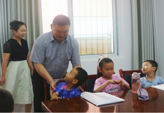 卓宇一行实地考察了支教团的住宿条件及工作环境。并深入课堂,详细了解了支教内容、招生情况、课程安排。观看了同学们的书法和俄语教学,与实践队员和小学员进行亲切地交流。