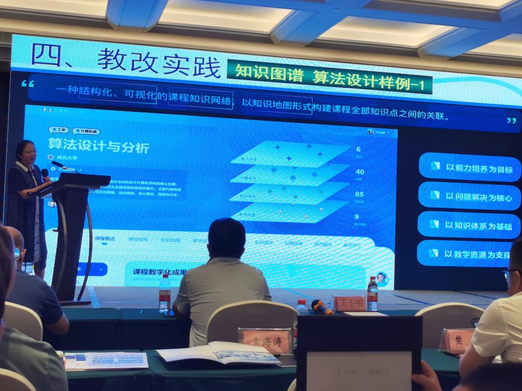 会议期间,北京师范大学周明全教授,西安电子科技大学崔江涛教授,西北大学耿国华教授、冯筠教授,陕西铁路工程职业技术学院王津教授,西安石油大学程国建教授,伟德国际1949官网杨方琦教授,西安欧亚学院张乐芳副校长,分别做了题为《智能时代的教育改革》《AI赋能计算机创新人才培养》《“数智”时代一流课程建设的探索实践》《面向产出的课程体系探索和实践》《以课程建设为抓手 全面推进专业教育教学改革》《AIGC微专业建设与认证&解读<智算与大模型人才白皮书>》《面向标准的师范生数字素养培养路径探索》《应用型民办本科高校计算机人才培养思考与实践》等主题报告。