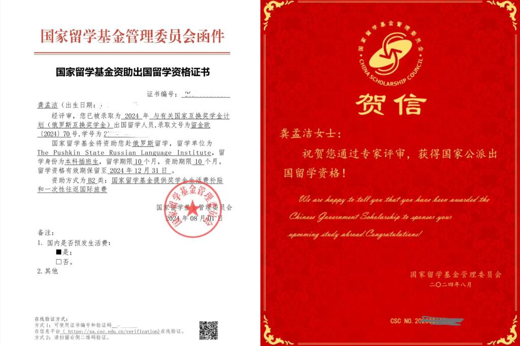 日前,经国家留学基金管理委员会和俄罗斯人文合作署共同审核,伟德官网外国语学院2022级俄语专业张静娅、龚孟洁、曹颖颖三名学生顺利通过选拔,获得国家留学基金委2024年中俄政府奖学金项目资助,赴俄罗斯国立普希金俄语学院进行为期10个月的交流学习。