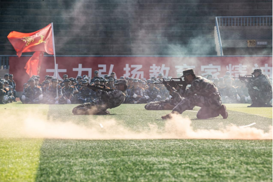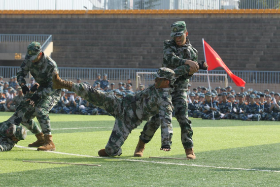 突击连方阵以整齐的队列、雄壮的气势拉开了总结大会的序幕;格斗方阵和应急棍方阵的同学们整齐划一、刚劲有力、精神饱满;由退役在校大学生军训教官组成的“追风”战斗演练排,利用战术手势无声沟通,灵活穿梭障碍之间,穿越硝烟弥漫的模拟场景,高超的协同作战能力,彰显男儿本色和军人铮骨的精彩呈现,将此次总结大会推上高潮,为军训总结画上了圆满句号,生动诠释了“恰同学少年,风华正茂;书生意气,挥斥方遒”的青年气概,展现了“爱党爱国,强国有我,保家卫国”的责任担当,引得现场掌声雷动。