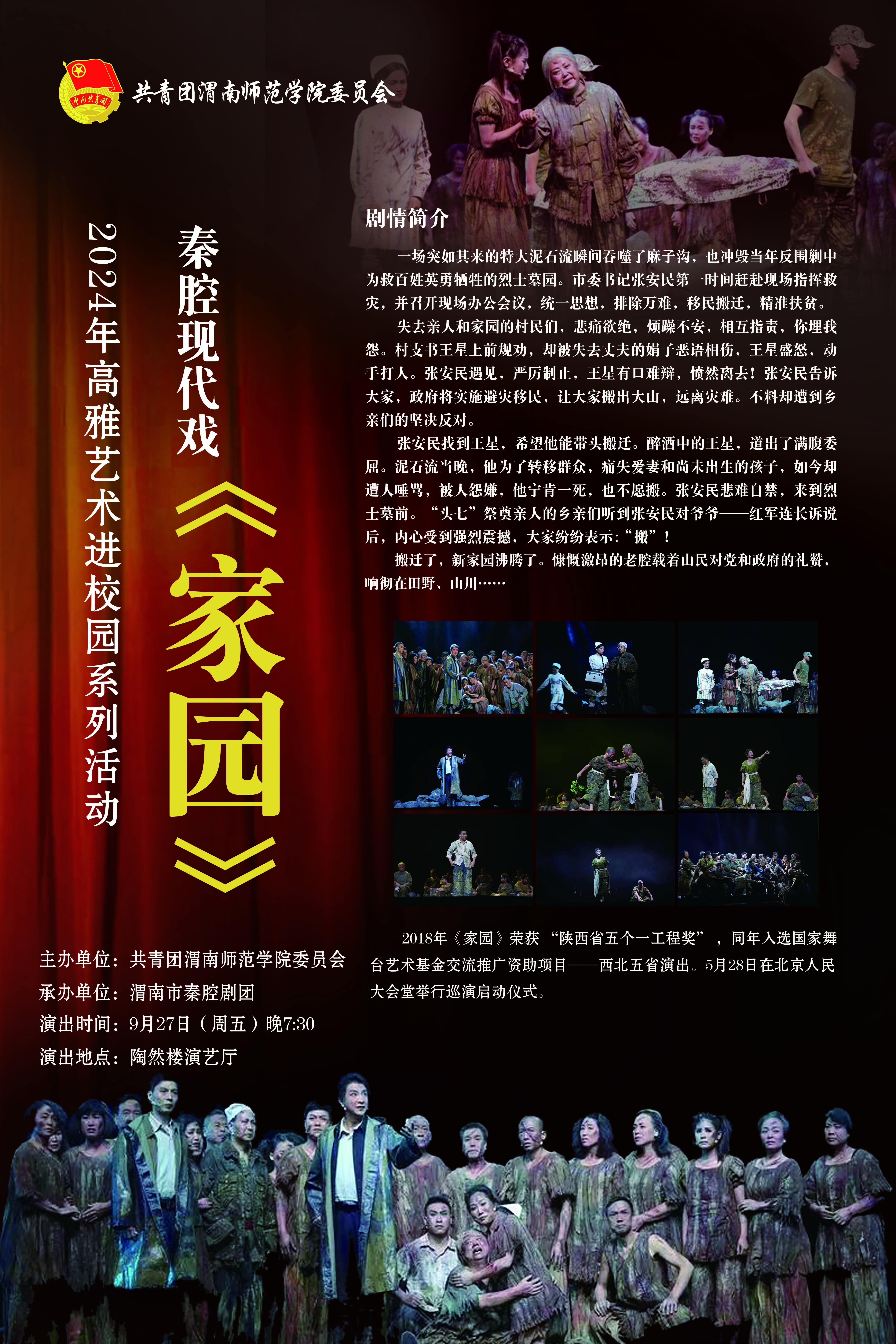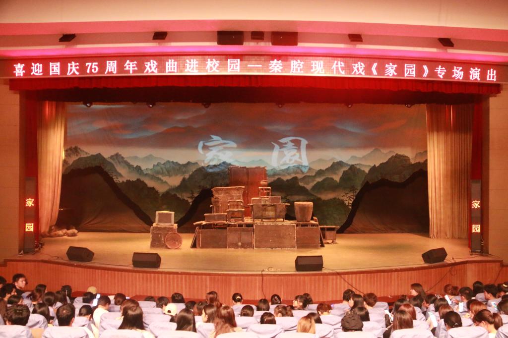 9月27日晚,2024年戏曲文化进校园活动暨庆祝新中国成立75周年秦腔现代戏《家园》专场演出在伟德官网陶然楼演艺厅举行,师生代表300余人共襄文化盛宴。