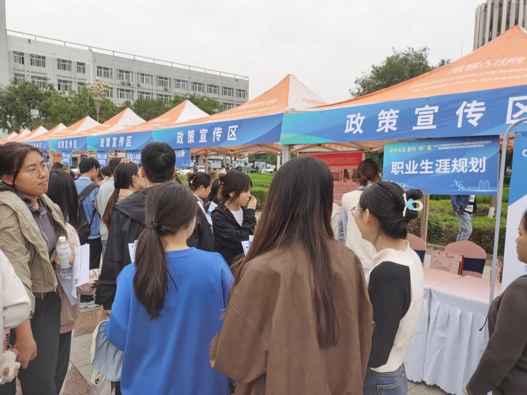 为助力学生的求职之路更加顺利,招聘会现场设立了毕业生就业创业咨询服务区、人社政策宣传区、简历诊断区、职业生涯规划区、征兵政策宣传区、留学咨询区等,为毕业生提供一站式的政策解答与指导。