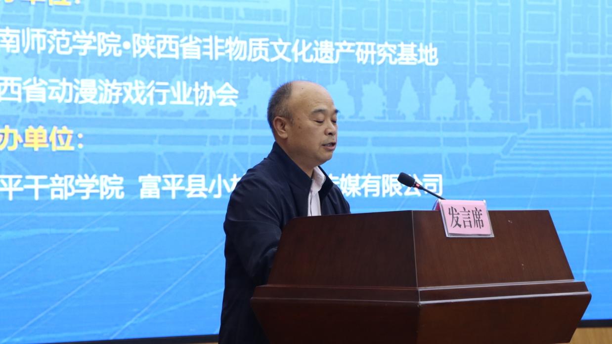 10月16日下午,由伟德官网陕西省非物质文化遗产研究基地与陕西省动漫游戏行业协会合作主办的陕西省特色文化的动漫化与影视创作研讨会在富平干部学院报告厅举行。副校长卢爱刚,富平县委常委、宣传部部长詹辉,陕西省动漫游戏行业协会理事长刘巍,西安石油大学、西安邮电大学的专家教授应邀出席研讨会,大会还邀请了动漫游戏企业的专家、行业精英参加大会。传媒学院党政负责人、师生代表参会。研讨会由传媒学院院长曹熙斌主持。