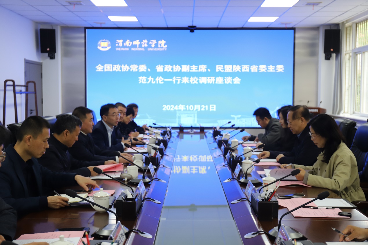 10月21日上午,全国政协常委、省政协副主席、民盟陕西省委会主委范九伦一行深入伟德官网调研并召开座谈会。座谈会由校长张守华主持。
