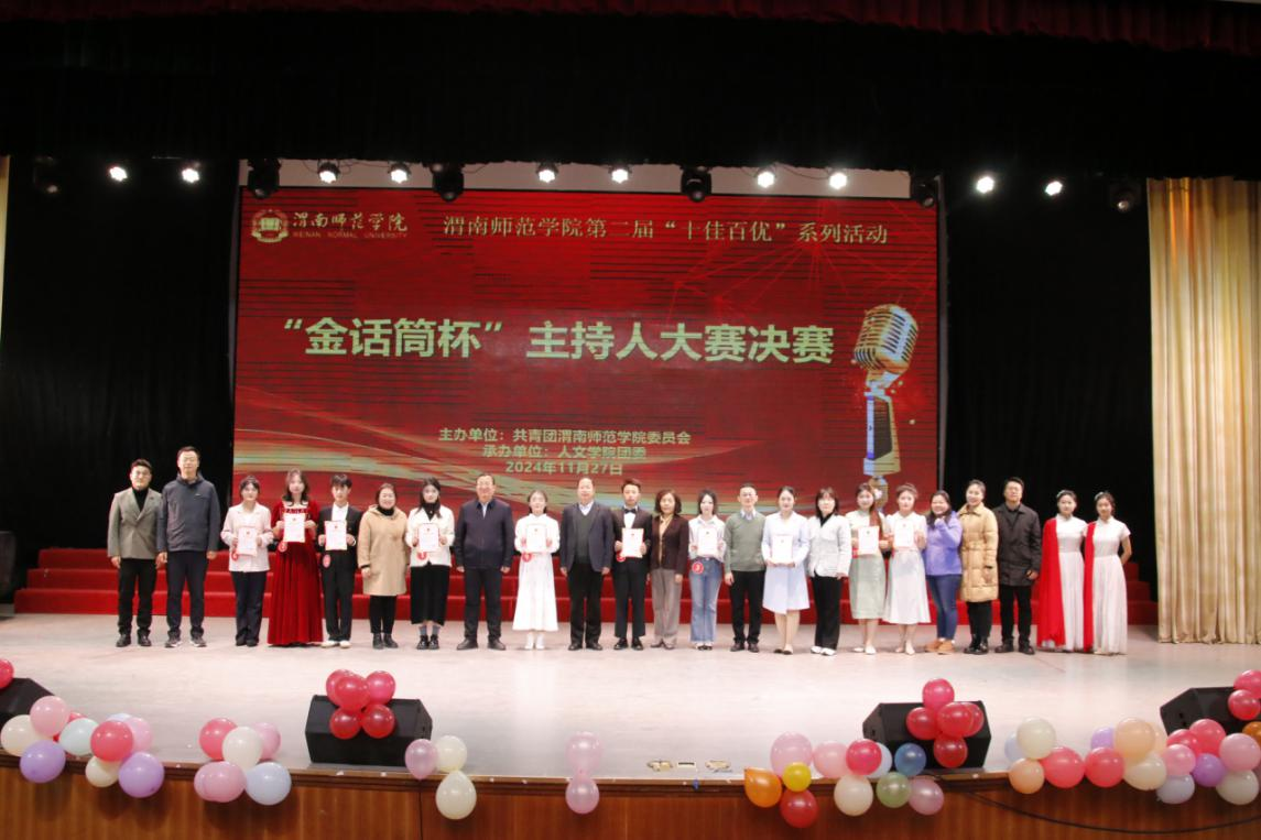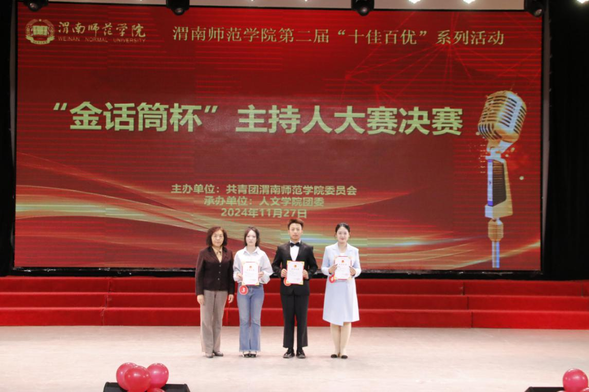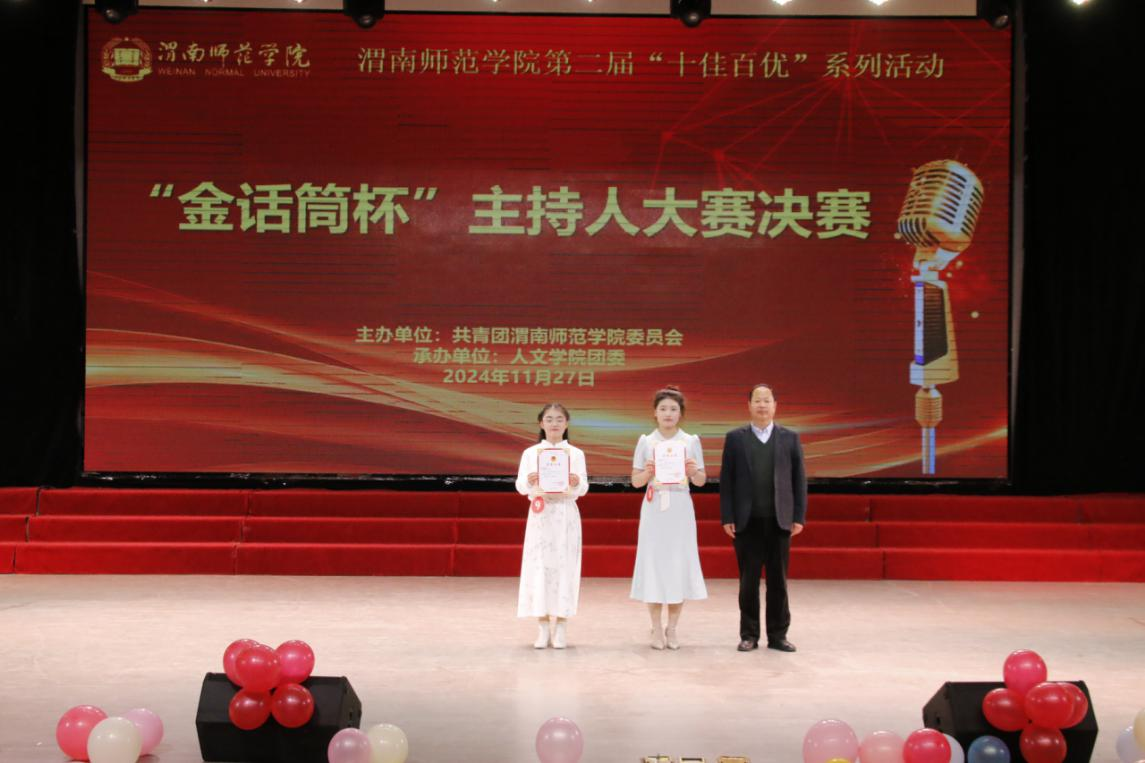 11月27日晚,由共青团伟德国际1949官网委员会主办,人文学院团委承办的伟德官网第二届“十佳百优”系列活动—“金话筒杯”主持人大赛决赛在朝阳校区陶然楼演艺厅成功举办。学校党委副书记汪勇,副校长王菊霞出席活动。评委由伟德国际1949官网学报编审詹歆睿、党委宣传部副部长石明、人文学院新闻学专业教师马丹担任。