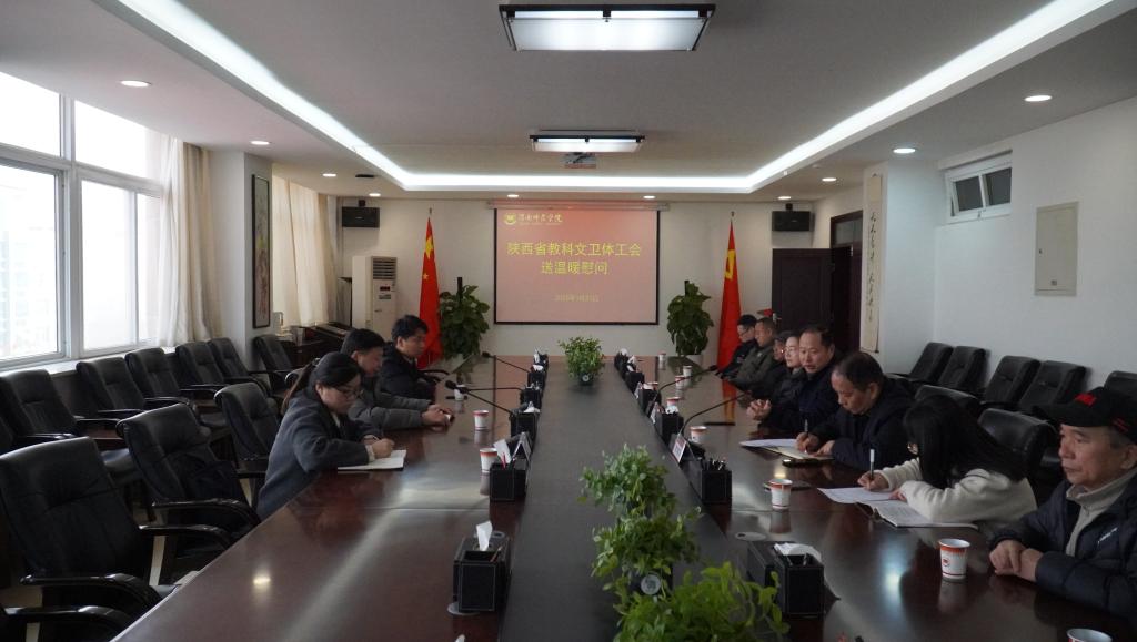 1月21日上午,省教科文卫体工会主席徐富权、二级主任科员钟振宇、三级主任科员赵元琛一行莅临伟德官网,开展春节送温暖慰问活动。伟德官网党委副书记汪勇、工会、保卫处及困难教职工参加座谈会。
