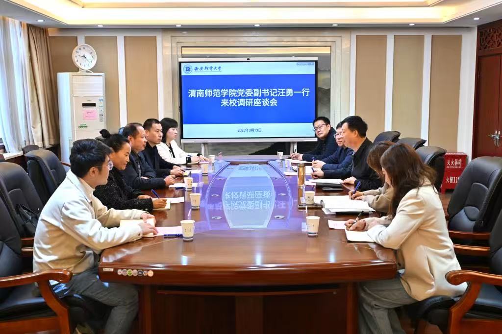 为积极探索新时代高校统战工作与校园文化建设新路径,3月13日,学校党委副书记汪勇,党委委员、统战部部长张勤恳,党委宣传部副部长朱芳转等一行赴西安邮电大学开展专题调研。西安邮电大学党委副书记安增旺、统战部常务副部长姜毅龙、宣传部副部长师妍等相关人员参加调研座谈,双方围绕统战工作创新、校园文化建设等议题展开深入交流。
