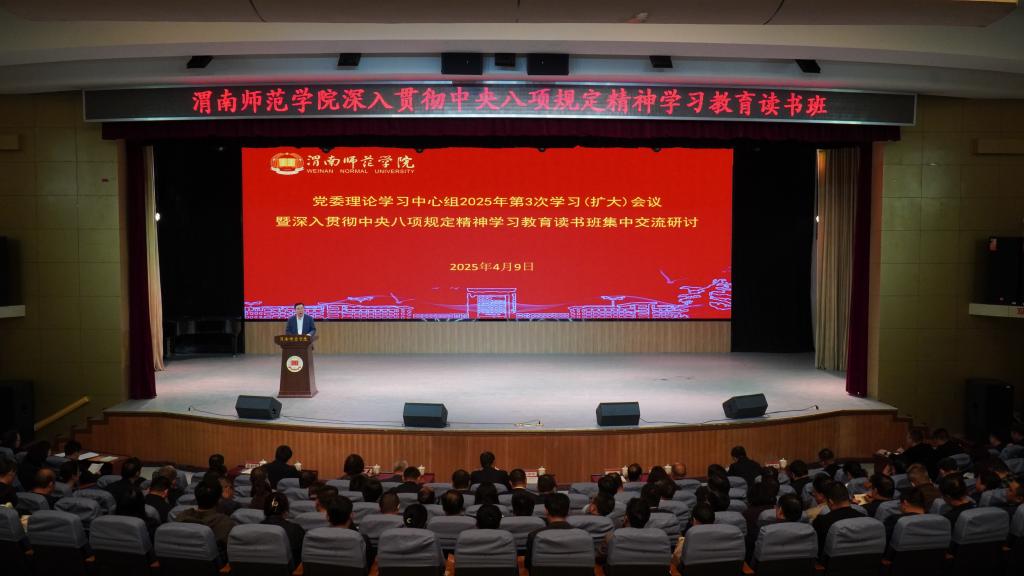 4月9日下午,学校召开本年度党委理论学习中心组第3次学习(扩大)会暨深入贯彻中央八项规定精神学习教育读书班集中交流研讨。党委书记、校长张守华主持会议并讲话。