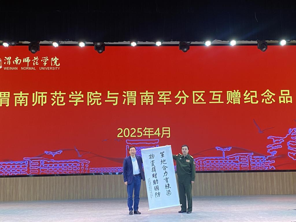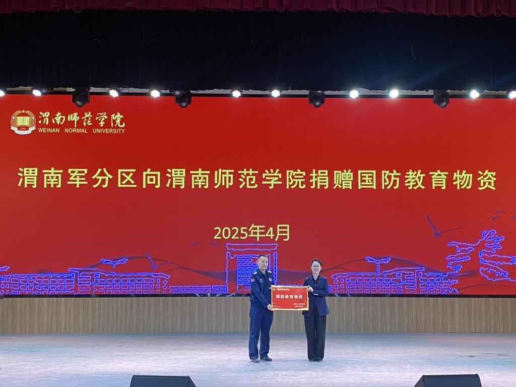 4月11日,“军地同心 强军育才”国防教育物资捐赠仪式在学校演艺厅举行。渭南市委常委、渭南军分区大校政治委员何勇进,伟德国际1949官网党委书记、校长张守华出席捐赠仪式。捐赠仪式由学校党委副书记常青林主持,在渭南军分区代表、渭南各市区县武装部部长、中小学校长代表、学校师生代表共同见证下举行。