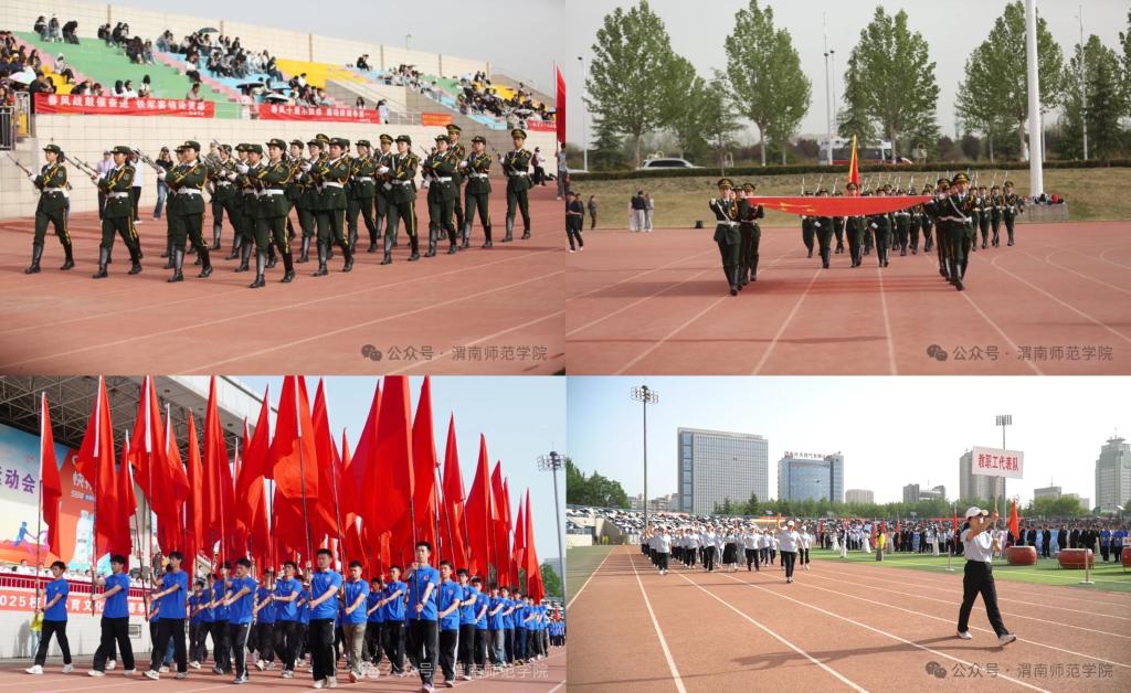 开幕式上,伴随着激昂奋进的《运动员进行曲》,国旗、校旗护旗队迈着坚定有力的步伐率先入场,经过主席台接受检阅,整齐划一,严肃庄重;彩旗队方队、裁判员方队紧随其后,精神抖擞,意气风发;各参赛代表队方阵,着装整齐,口号嘹亮,或高举展牌、或挥舞彩旗、或击鼓表演,各有特色,充分彰显了渭师师生朝气蓬勃、奋发向上的体育精神。