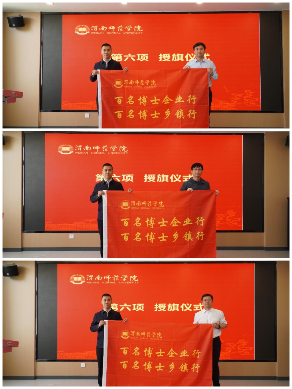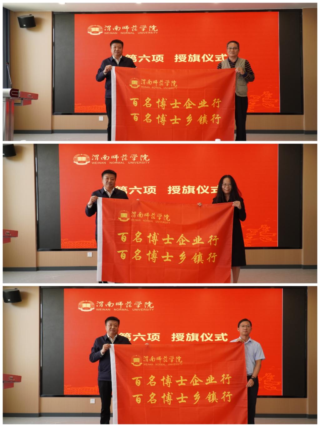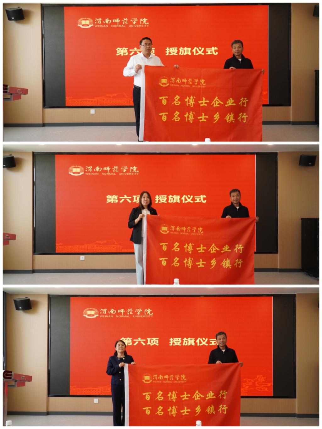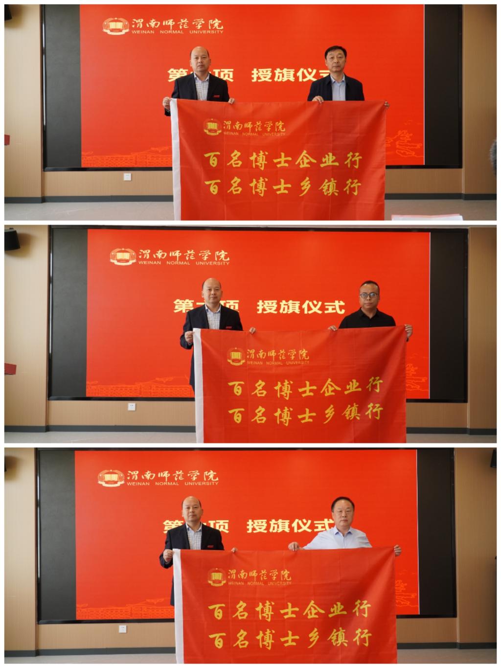 与会领导为15支博士服务团授旗。博士团将深入企业一线,加速科研成果转化,为渭南区域经济圈建设注入智力引擎。