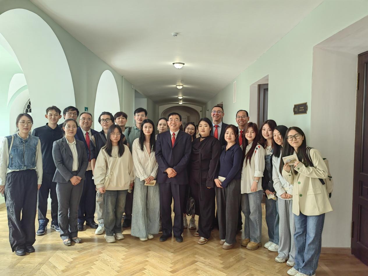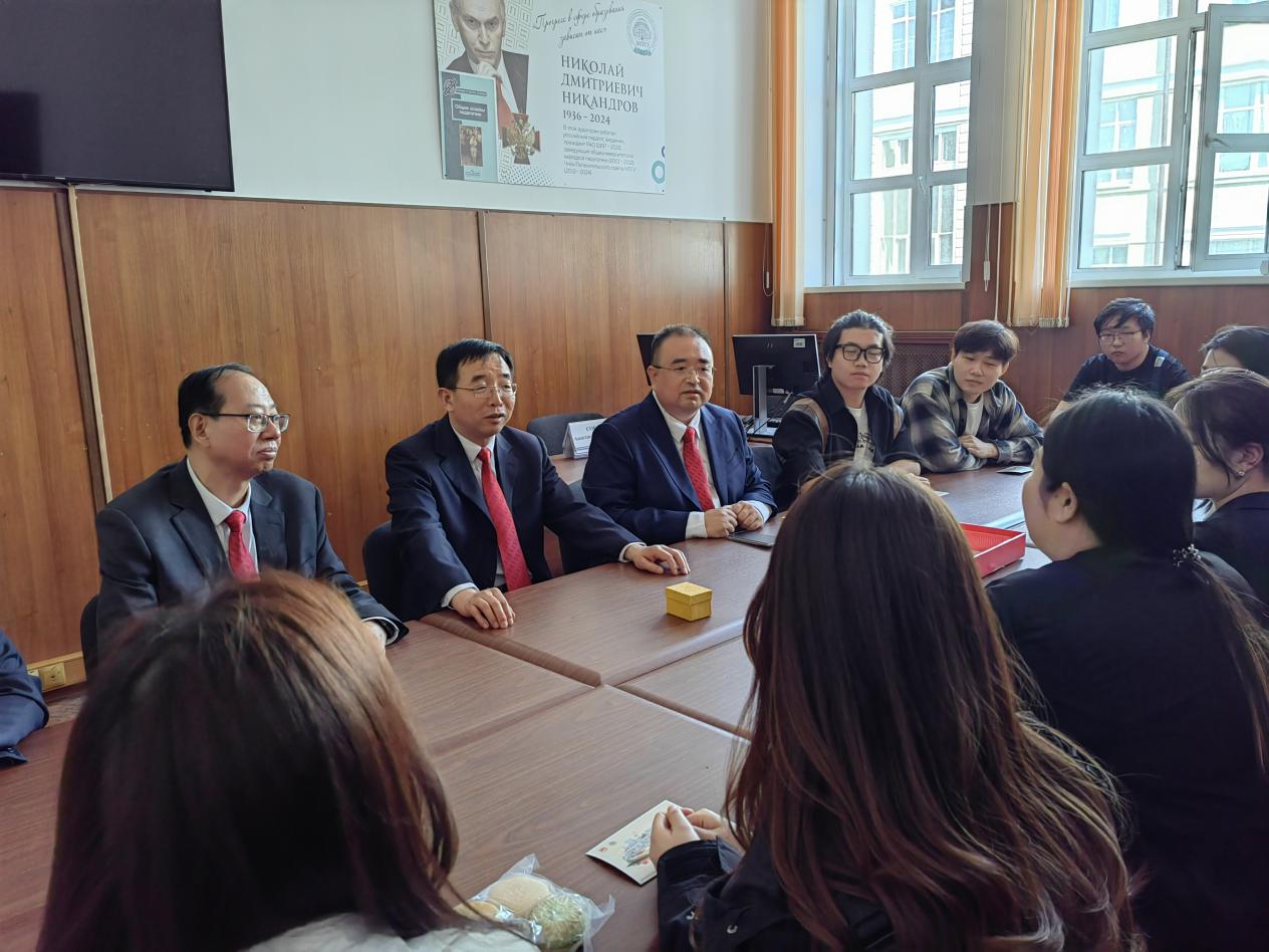 在交流环节中,张守华与在俄校友们进行了亲切地互动。校友们逐一分享了在莫斯科国立师范大学的学术收获与科研成果,并深情追忆了在伟德国际1949官网求学的美好时光。在读博士董垚感慨道:“正是本科阶段扎实的培养,使我在海外研究中能够迅速适应并自信成长,我由衷感激母校的悉心栽培与支持。”