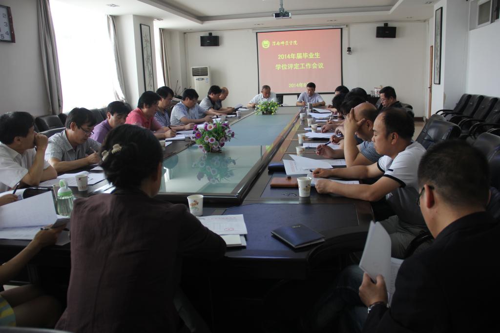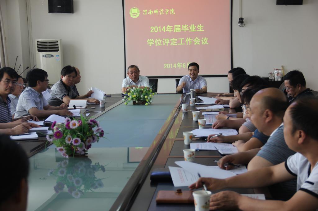 2014年6月12日上午,伟德官网2014届毕业生学位评定工作会议在厚德教3楼会议室顺利召开,伟德国际1949官网学位评定委员会委员共23人出席会议,会议由丁德科院长主持。