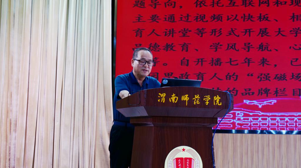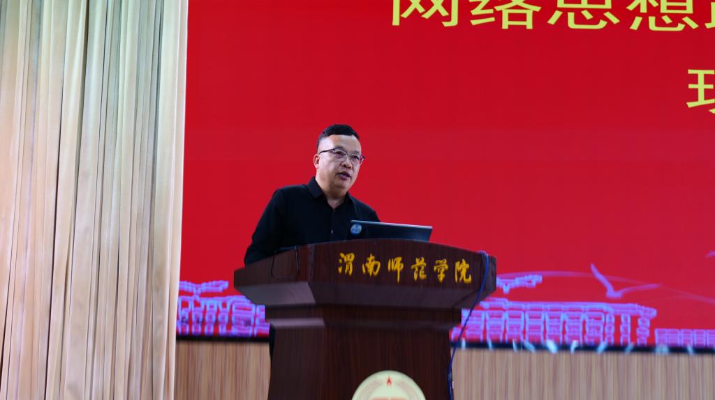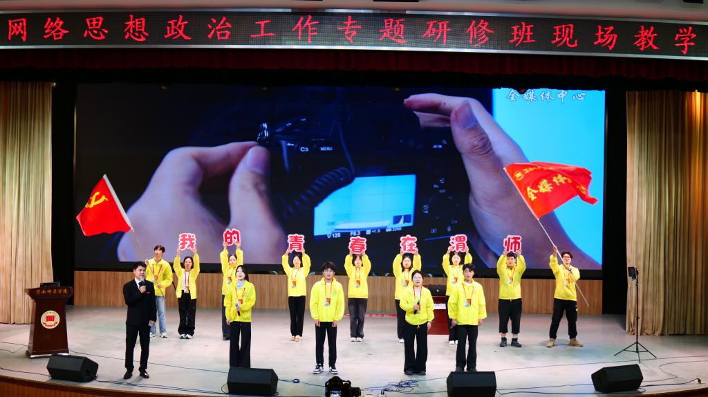 教学期间,党委宣传部副部长石明以《构建“三全育人”新矩阵 打造网络思政新高地》为主题,介绍了学校网络思想政治工作的创新实践。