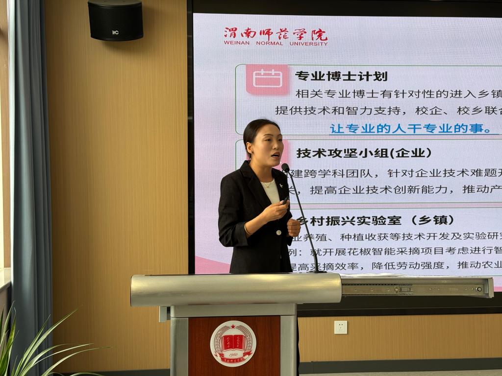 李强在主持中指出,“百名博士企业行·乡镇行”是学校深化产教融合、创新社会服务模式的关键抓手,充分体现学校响应省市共建号召、扎根渭南服务地方的使命担当。博士团调研成果为学校精准对接乡村振兴与企业需求提供了重要依据。他号召全校师生践行“以服务求生存、以贡献促发展”理念,发挥专业优势,助力渭南经济社会高质量发展。