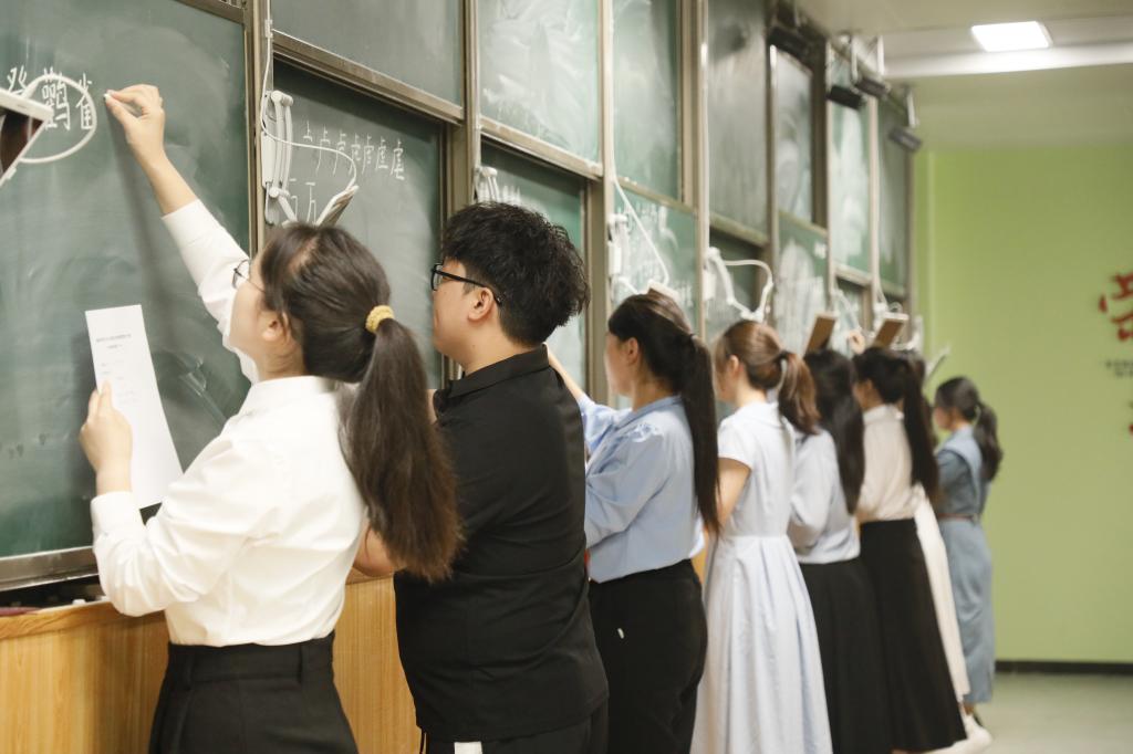 在板书测试与即兴演讲环节,学校特邀多位教学经验丰富的教师担任评委,为比赛的专业性与公正性提供有力保障。板书测试按照每组五人进行内容抽签,测试内容包括五个汉字的规范笔顺及一段约25字的中华经典古诗文,旨在全面考查选手的书写规范性与传统文化素养。即兴演讲则更侧重对选手知识积累、语言表达、心理素质及思维应变能力的综合评估。模拟授课环节由来自基础教育一线的12位优秀教师担任评委专家评审团,从教学设计、多媒体课件、说课展示到课堂模拟与现场答辩,进行全方位、公平公正的评审,并在赛后给予专业细致的点评与指导。选手们虽然面临挑战,但都充满自信,充分体现了扎实的教学基本功和良好的师范专业素养。