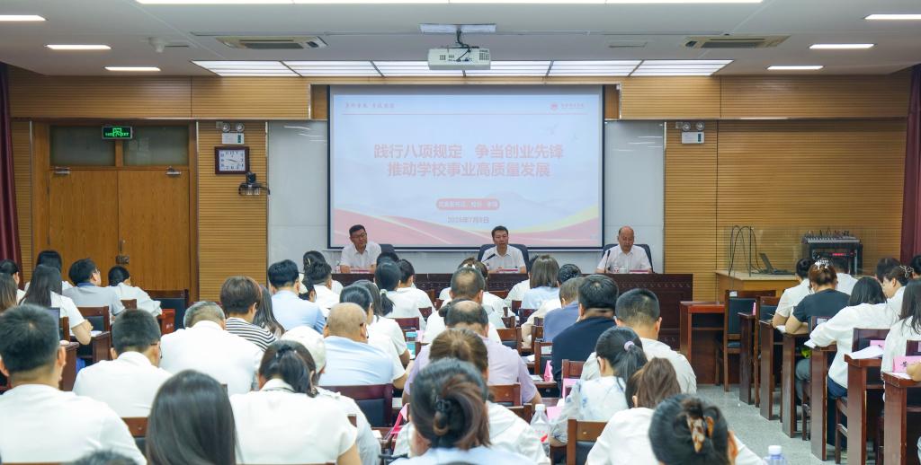 7月5日至7日,学校2025年“夏启新程 强基赋能”暑期干部训练营——科级干部和年轻后备干部专题培训班在朝阳校区举办。学校党委副书记、校长李强出席开班式并讲授深入贯彻中央八项规定精神学习教育专题党课。党委委员、组织部部长、党校副校长田超主持开班式。