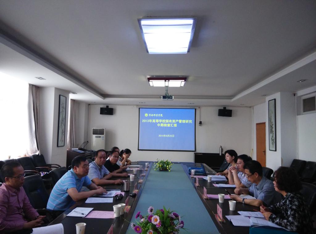 6月25日上午,省教育厅财务处副处长杨林立率领由省资产学会教育资产专业委员会办公室主任李莉、西安外国语大学纪委主任田学文和陕西省理工学校财务科科长臧红梅组成的2013年高等学校国有资产管理研究课题中期检查工作组来伟德官网检查2013年高等学校国有资产管理研究课题完成情况。汇报工作在学校厚德楼三楼会议室进行,项目主持人程书强教授带领项目组成员、社科处、国资处和计财处等相关人员出席了会议。