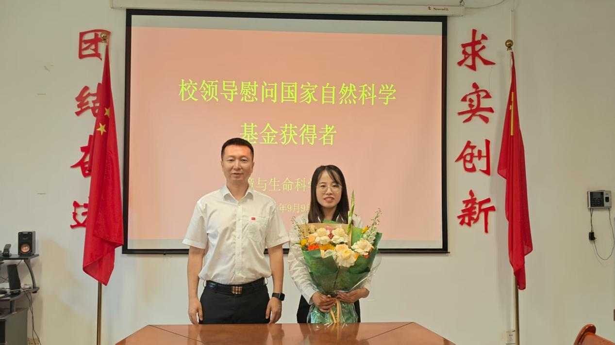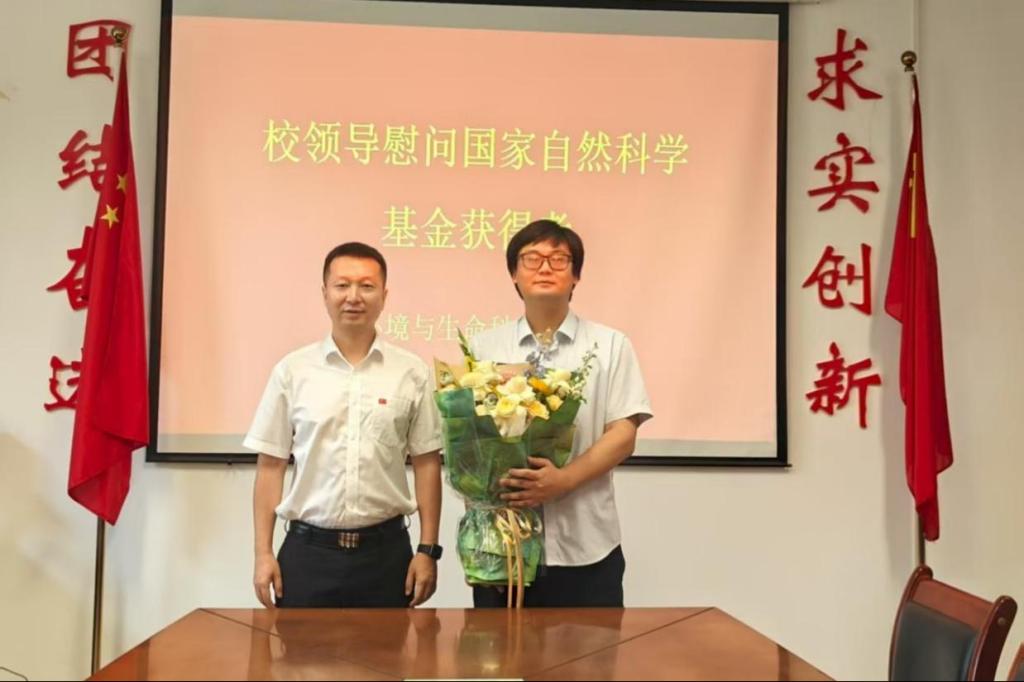 除了关怀退休教师,校领导还走进各二级学院,慰问了11位在教学、科研一线表现突出的教师代表。校长李强带领相关部门负责人来到环境与生命科学学院,与刚获国家自然科学基金立项的张浩博、王萌两位教师亲切交流。李强校长首先向他们表达了热烈的祝贺,他指出,国家自然科学基金的获批,不仅是对两位教师科研能力和学术素养的高度认可,更是学校科研实力与学科建设水平的重要体现,对学校相关学科的发展具有重要推动作用。李强校长叮嘱相关部门要为项目实施提供全方位的保障,同时鼓励两位教师沉下心来,潜心研究,勇攀学术高峰,以实际成果推动学校学科建设提质增效。