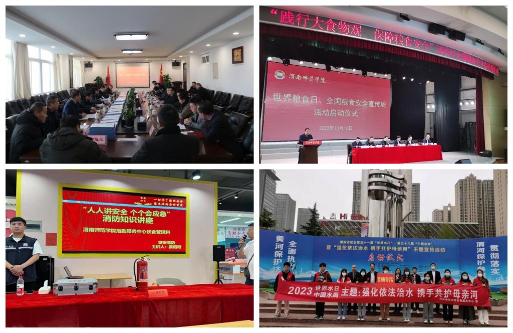 平安校园坚守底线,围绕平安渭南建设大局,深入开展安全教育,认真落实安全责任,全面加强安全管理,维护校园安全稳定。加强校园生态环境综合治理,组织开展“世界水日,中国水周”节水宣传、“世界粮食日暨全国粮食安全宣传周”等活动,常态化开展“爱国卫生运动”“爱校护绿”美丽校园行动,大力建设绿色校园,营造绿色低碳校园环境氛围。
