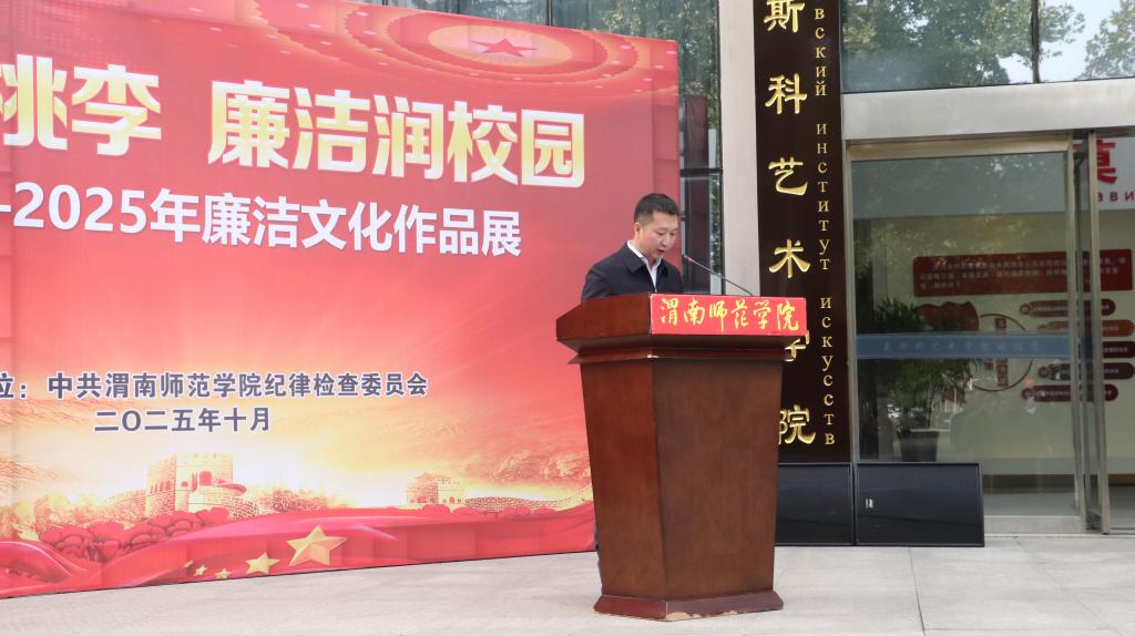 李强在讲话中指出,要提高政治站位,深刻领会新时代廉洁文化建设的重大意义;聚焦育人实效,全面夯实清正廉洁思想根基;凝聚各方合力,推动廉洁文化建设走深走实。他对举办2025年廉洁文化作品展以及取得的成果和实效给予肯定,并号召广大党员干部和师生员工更加紧密地团结在以习近平同志为核心的党中央周围,以高度的政治自觉、思想自觉和行动自觉,扎实推进新时代廉洁文化建设,让清廉之风沐浴校园、廉洁理念深入人心,为培养一代又一代担当民族复兴大任的时代新人,为把伟德官网建设成为师范特色鲜明的地方一流大学提供坚强的政治保证和强大的精神动力!