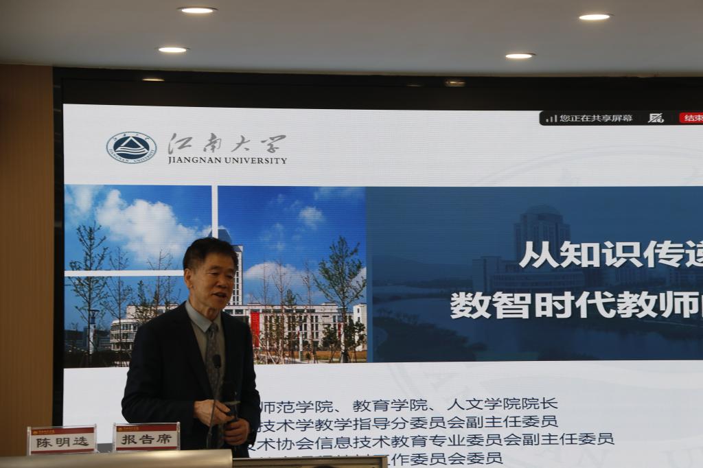 主旨报告由副校长曹强主持。华中师范大学周洪宇教授、北京师范大学朱旭东教授、江南大学陈明选教授、西北师范大学郭绍青教授和陕西师范大学李忠教授分别就“三师课堂”及陶行知教育精神、教师教育“学科群”建设、教师的角色升维与能力重塑、教育新赛道等多个方面进行了深入研讨,为数字化赋能教师发展提供了前瞻性的思路与切实可行的建议。