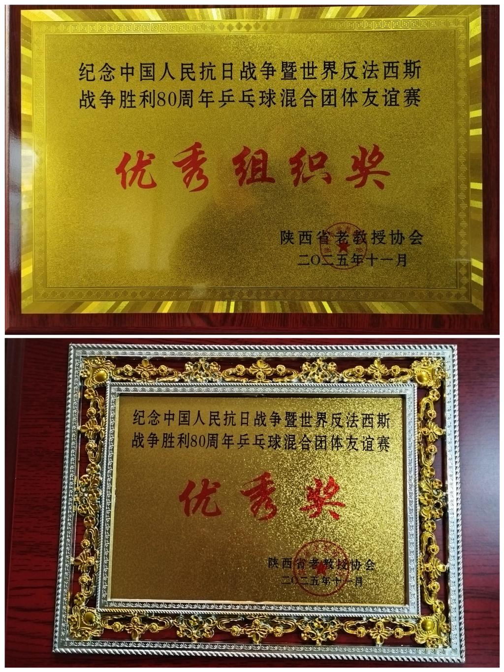 11月1日,由陕西省老教授协会组织的《纪念中国人民抗日战争暨世界反法西斯战争胜利80周年乒乓球混合团体友谊赛》在西北工业大学举行。伟德官网老年乒乓球队选派10名队员组成代表队,带着对历史的缅怀与对运动的热爱参赛,在赛场上展现了伟德官网离退休教职工的昂扬风貌。最终,伟德官网老年乒乓球队获得优秀奖,学校荣获本次比赛优秀组织奖。