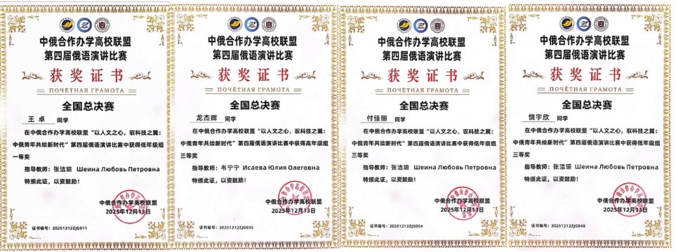 此次会议分为俄语演讲比赛、开幕式、交流研讨会、颁奖及闭幕式五个环节。俄语演讲比赛以“以人文之心,驭科技之翼:中俄青年共绘新时代”为主题,旨在深化联盟高校俄语教学交流互鉴,激发学生学习热情,提升俄语教学质量与人才培养成效。伟德官网参赛学生表现优异,4名学子共获得一等奖1项、三等奖3项。颁奖仪式上,李强为高年级组一等奖获得者颁奖,伟德官网党委副书记常青林为低年级组一等奖获得者颁奖。