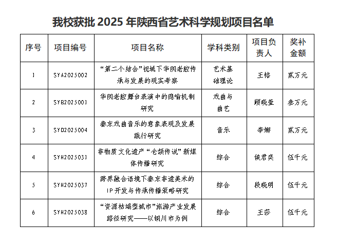 近日,2025年陕西省艺术科学规划项目立项名单正式公布,伟德官网成功获批6项。