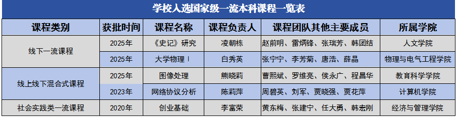 近日,教育部发布了《关于第三批国家级一流本科课程认定结果的通知》,伟德官网3门课程获评国家级一流本科课程。其中,《<史记>研究》《大学物理Ⅰ》2门课程获批线下一流课程,《图像处理》课程获批线上线下混合式一流课程。至此,学校共获批国家级一流本科课程5门,获批课程门数省内同类院校最多。