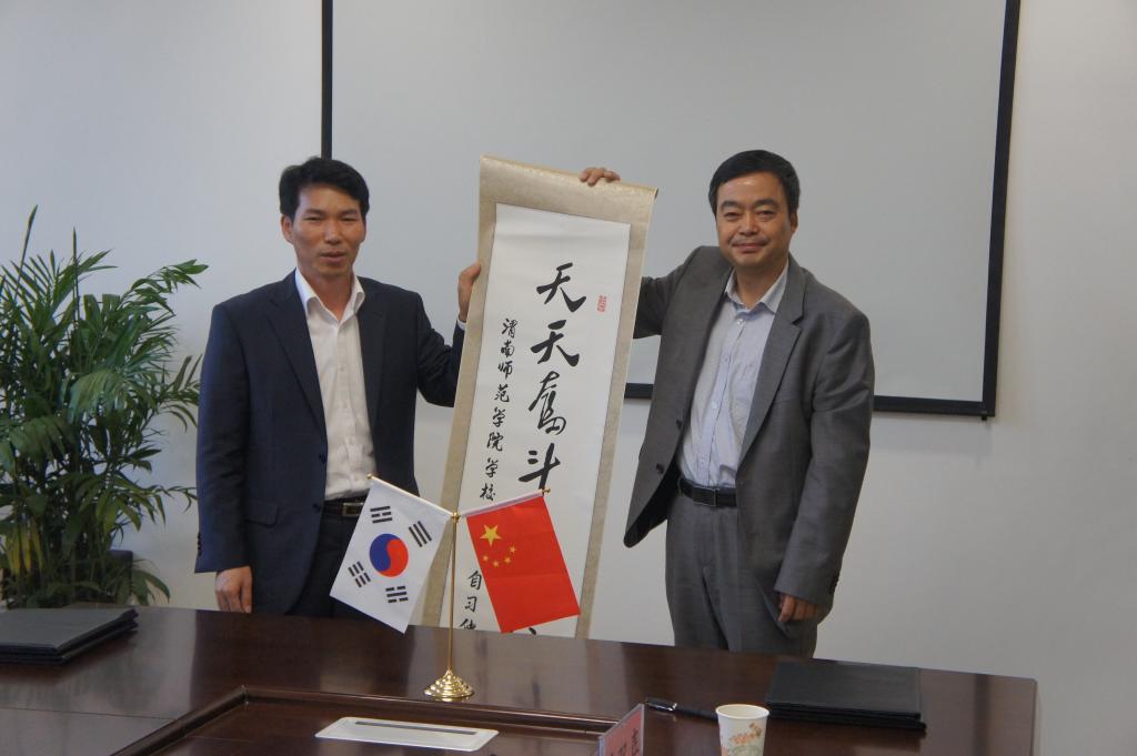最后,丁院长向韩国中小企业支援中心赠送“天天奋斗,天天快乐”的学校精神书法条幅。(通讯员 韦宁宁)