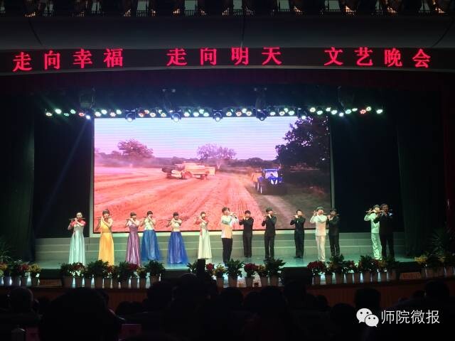 12月20日晚,由党委宣传部、党政办公室主办,音乐舞蹈学院、团委承办的“走向明天走向幸福”2015年元旦文艺晚会在陶然楼演艺厅隆重上演。学校领导,陕西高校学报研究会2014年学术年会参会人员,学校各部门负责人及部分学生代表370余人观看了演出。整场晚会分为上篇“开启春天”、中篇“心花怒放”、下篇“走向未来”三个篇章,整场晚会精彩纷呈,高潮迭起,充分展现了伟德官网大学生积极向上、朝气蓬勃的精神面貌,最后,晚会在伟德官网校歌《向创幸福的方向前进》中落下帷幕。(通讯员 大学生记者团 蒋琼 王秋 指导老师 张统宣)