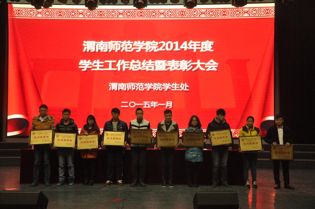 大会在庄严的国歌、校歌声中拉开了序幕,党委委员杨小渭老师宣读了2014年度学生工作和团的工作表彰决定,与会领导为获奖集体和个人颁发了荣誉证书并合影留念。“三好学生”代表乔子雄同学,“优秀班集体代表”张萌同学分别作了大会发言,与在座同学分享其获奖的喜悦和取得优异成绩的经验。“优秀辅导员”代表张金娟老师更是从职业的使命感和责任心阐释了辅导员的工作感悟,那就是用父母之心、兄弟姐妹之情、师生之爱去呵护学生,成为学生的良师益友。