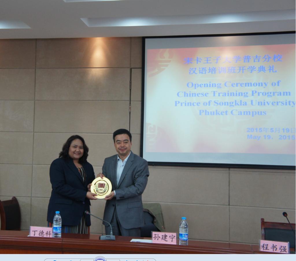 5月19日下午,泰国宋卡王子大学普吉分校国际汉语留学生班开学典礼在伟德官网学术报告厅举行。省教育厅国际合作与交流处处长孙建宁、院长丁德科、宋卡王子大学普吉分校国际研究学院副院长Napacha、国际研究系主任Jarasak等参加典礼。开学典礼由副院长程书强主持。