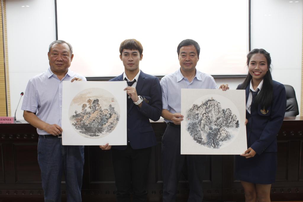 接着,院长丁德科发表重要讲话。丁院长对留学生在学习、生活等方面取得的成绩表示祝贺。他指出此次国际汉语留学生班的成功举办标志着伟德官网与宋卡王子大学开始了实质性的合作,不仅增加了两校的友谊,而且增进了中泰两国人民的情谊。伟德官网将派教师赴泰攻读泰语硕士,不断促进伟德官网的双语教师课程建设。随后,张书记、丁院长为培训班学员颁发了结业证书,接着为优秀学生颁发了由美术设计学院提供的书画作品,激励学生努力学习,不断进步。之后与会领导、老师与泰国学生合影留念。