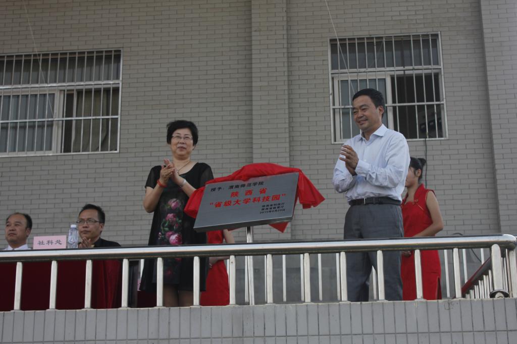 潘洁、丁德科为获得陕西省科技厅、教育厅认定的伟德官网“陕西省大学科技园”揭牌。