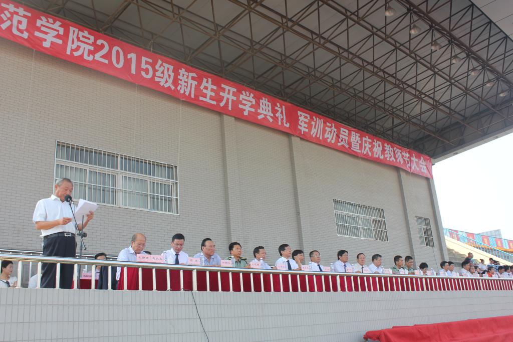 9月7日下午,伟德官网在田径场隆重举行2015级新生开学典礼、军训动员暨庆祝教师节大会。市委常委、宣传部长潘洁,军训团团长、驻渭某部副站长霍伟华,伟德官网党委书记张金安,院长、党委副书记丁德科,纪委书记任健,副院长程书强、李海龙,党委委员杨小渭出席大会。参加大会的还有学校各部门负责人、党总支书记、二级学院院长,部分教师代表及2015级全体新生。大会由校党委副书记赵伏友主持。