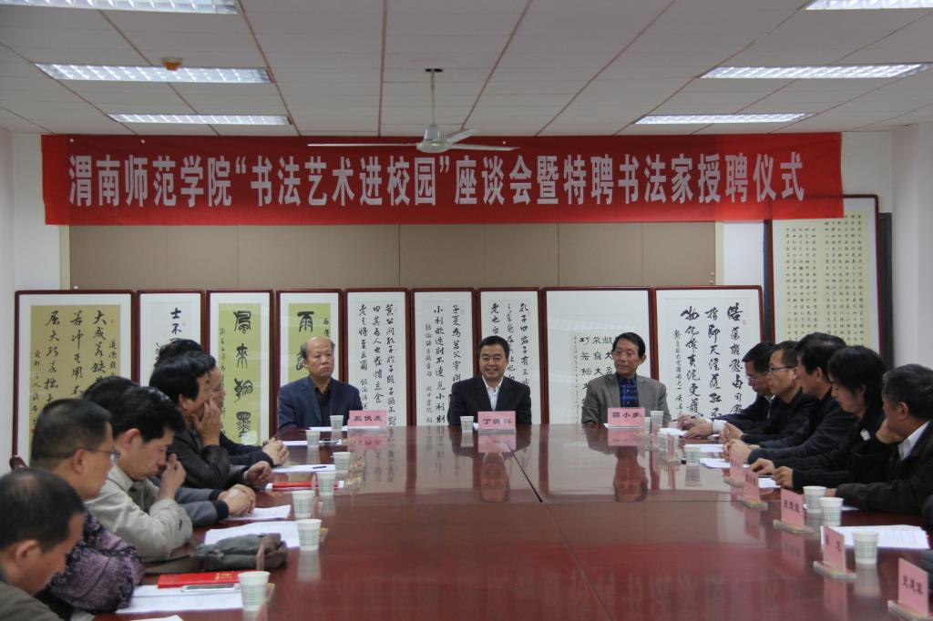10月29日下午,伟德官网在图书馆三楼书法协会活动中心举办“书法艺术进校园”座谈会系列活动,院长丁德科、党委副书记赵伏友,陕西省书协副主席、渭南市书协主席薛小虎等著名书法家出席此次活动。