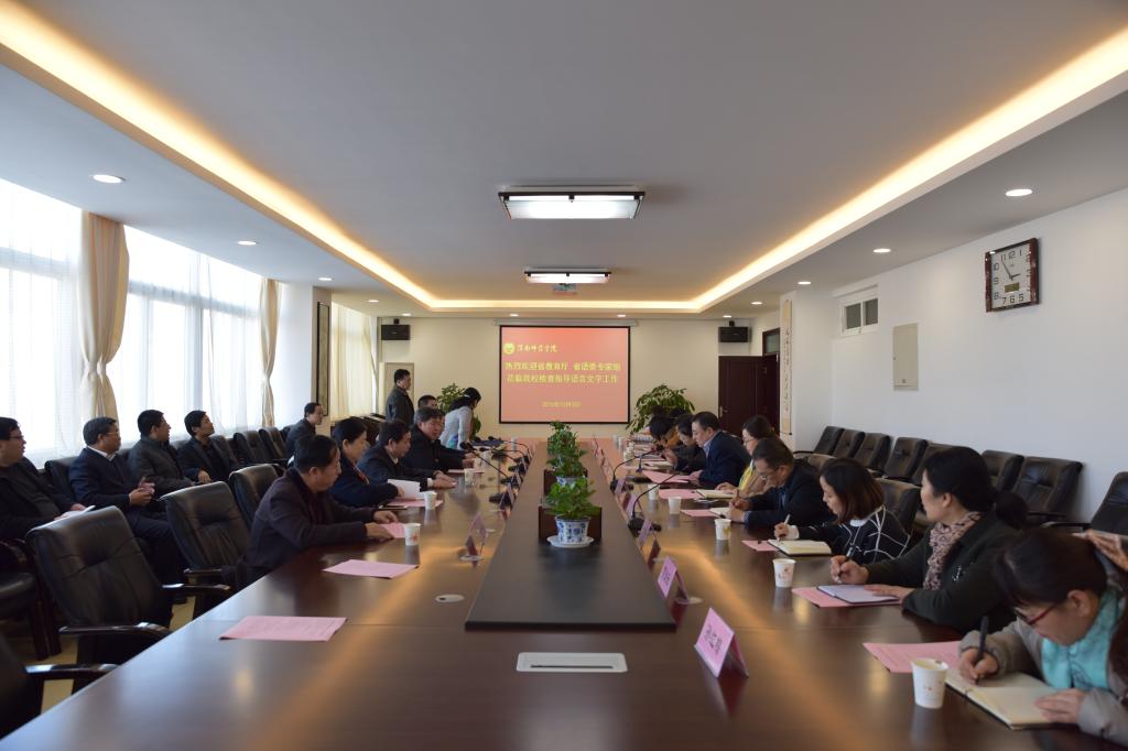 12月3日下午,陕西省人大教科文卫委员会主任杨希文,省教育厅副厅长、省语委办主任王海波,渭南市委常委、副市长唐代治率省教育厅、省语委专家组对伟德官网语言文字工作进行了检查。校长丁德科会见专家组一行,副校长程书强参加汇报会并讲话。