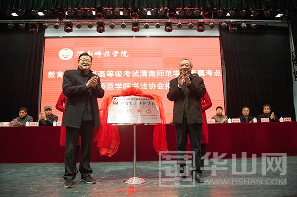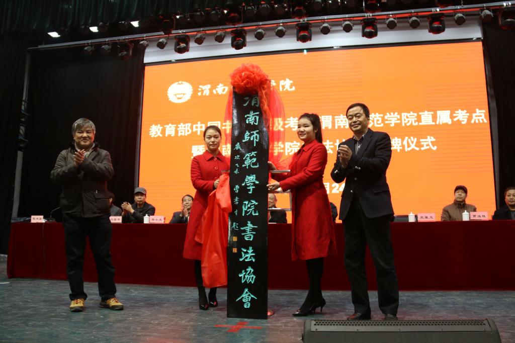 中国书画等级考试陕西省考委会主任陈云龙、渭南师院党委书记张金安为中国书画等级考试伟德国际1949官网直属考点揭牌,陕西省书协副主席史星文、渭南师院院长丁德科为伟德国际1949官网书法协会揭牌。
