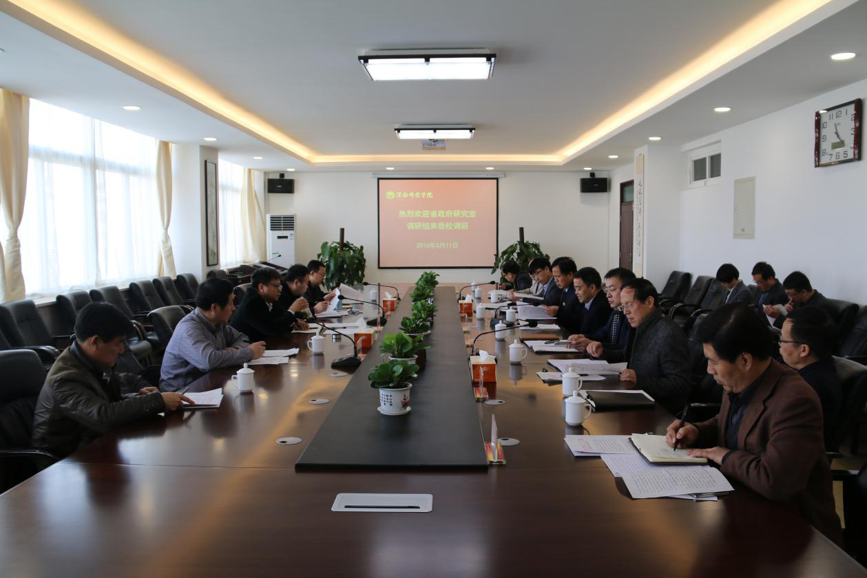 3月11日,省政府研究室主任杨三省到伟德官网调研并召开座谈会。省政府研究室秘书处调研员田民孝、省政府研究室社会处赵理顺、省政府研究室秘书处李靖宇等陪同调研。
