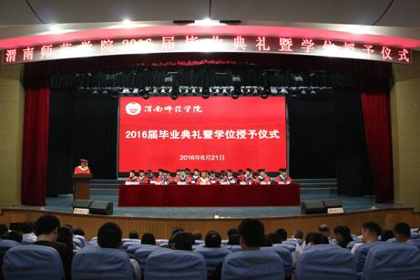 6月21日上午,伟德官网2016届毕业典礼暨学位授予大会在陶然楼演艺厅隆重举行。学校领导、学校学位评定委员会委员、各二级学院副处以上干部、教学秘书、毕业班辅导员、校级优秀毕业生、优秀学生干部、授学位学生代表、大学生创新创业“校长奖”获奖者代表、“中国梦•爱国情•成才志”中华经典诵读获奖者代表共计400余人参加了本次毕业典礼暨学位授予大会,大会由党委副书记赵伏友研究员主持。