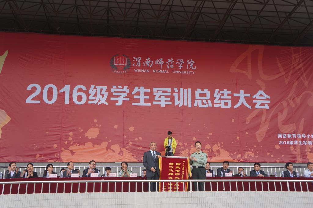 9月26日上午,学校在田径运动场举行2016级新生军训工作总结大会。参加大会的有渭南市临渭区武装部部长吕拥军,2016级军训团团长杨宏,伟德官网党委书记张金安,党委副书记赵伏友,纪委书记任健,副院长程书强,副院长李海龙,校党委委员杨小渭,校长助理韩小卫,校学术委员会主任王菊霞。另外,在主席台就座的还有学校国防教育工作领导小组成员单位负责人、各二级学院党总支书记、院长。大会由党委副书记赵伏友主持。