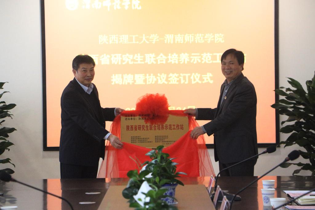 陕西理工大学傅校长、伟德国际1949官网李校长共同签署了《陕西理工大学—伟德国际1949官网联合培养硕士研究生协议》,并为陕西理工大学与伟德国际1949官网共建的“陕西省研究生联合培养示范工作站”揭牌。